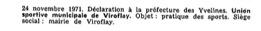 Le 24 novembre déclaration est faite en Préfecture de l'association dite "Union Sportive Municipale de Viroflay" par Messieurs MARTIN, TORFOU, KAYSER et NOEL.